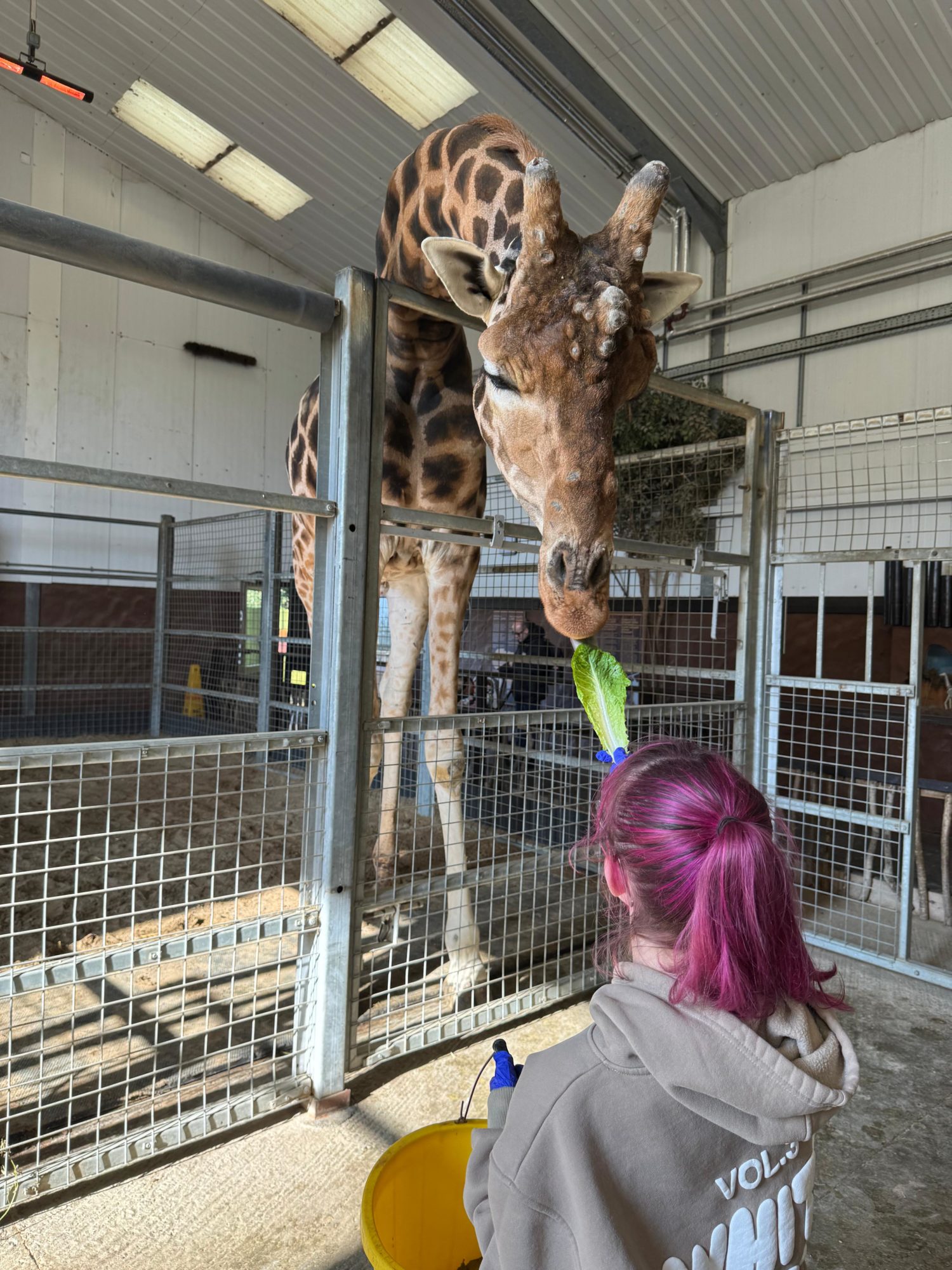 The giraffe I fed was really hungry! He is super strong. It was a really fun experience, getting to go into the feeding area and being that close to the giraffes. Pippa the keeper was amazing, because she told us lots of facts about giraffes how they are cared for.