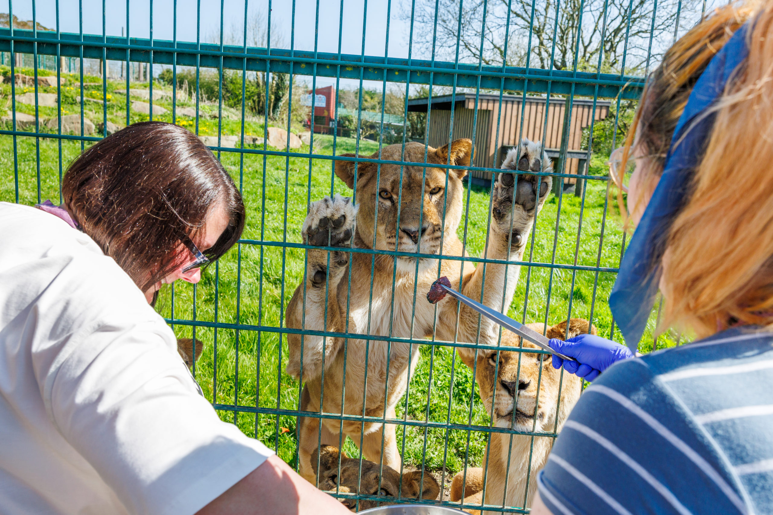 You’ll be welcomed by one of our lion keepers and after a short briefing you’ll be feeding our magnificent pride. When our lionesses see you they’ll be right over for a feed. Nothing will prepare you for seeing these magnificent animals up close.