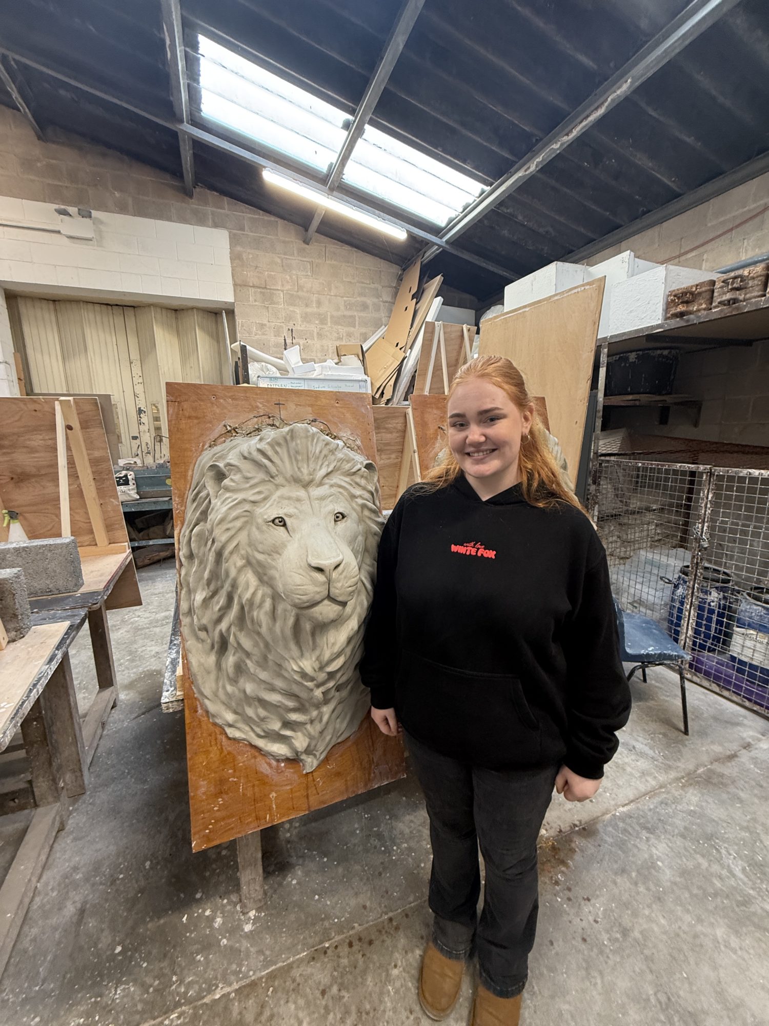 Our majestic male lion Hugo, who passed away earlier this year, is being honoured by having a memorial built in his memory. And who better to commission with this special project than local art students from Carmarthen School of Art at Coleg Sir Gar?