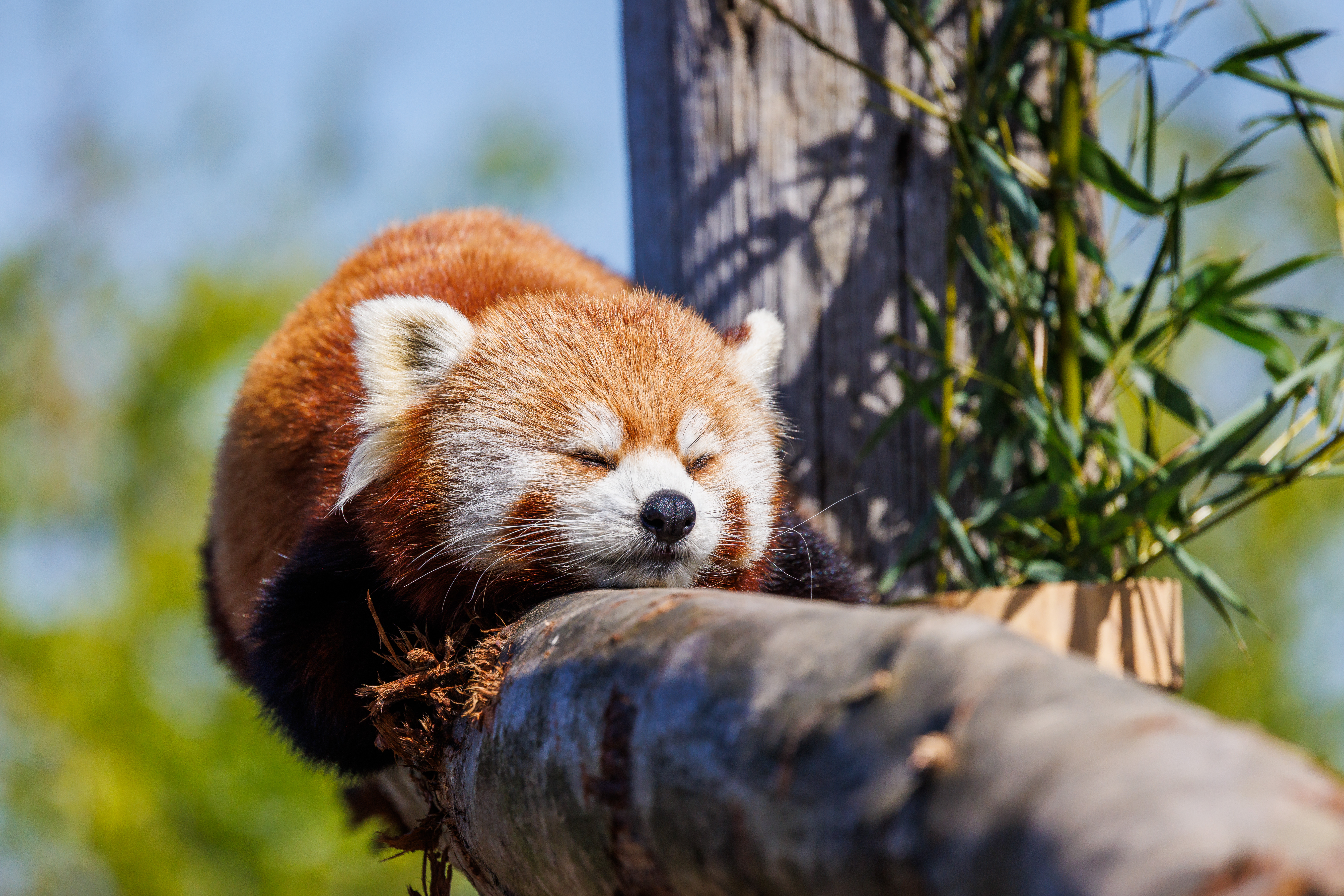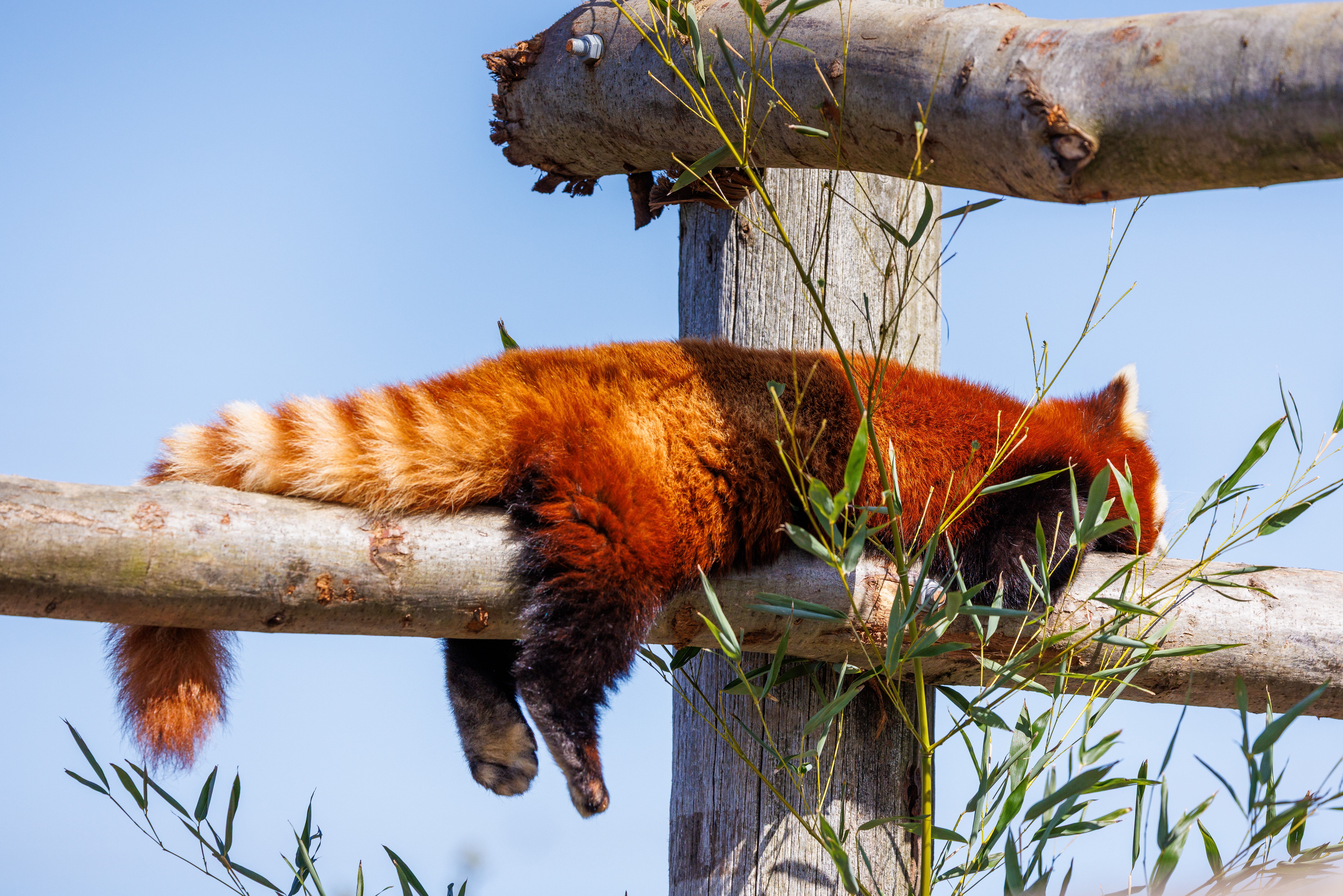 Ariel is six years old and, like all red pandas, she is a big fan of a slow, gentle day. Most of her time is spent doing exactly what red pandas do best: eating bamboo, climbing to find the best viewpoint, grooming that lovely thick fur coat and enjoying a good rest in the sunshine. She’s made herself at home quickly in the red panda exhibit, getting to know every branch, shelter and platform. If you catch her at the right moment you will see her picking her way along the climbing areas, or stretched out in a cosy spot having a nap.