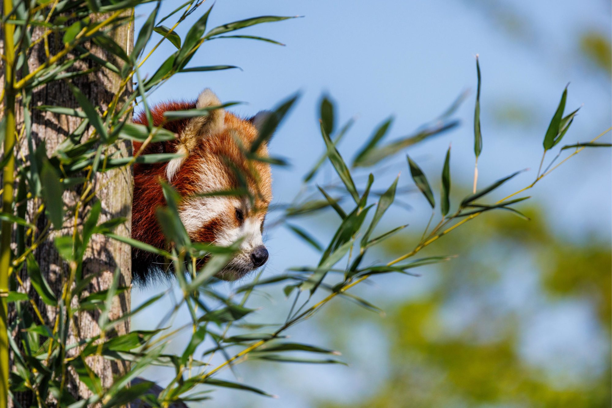 The red panda diet is 97% bamboo and they occasionally eat small mammals, eggs and flowers.